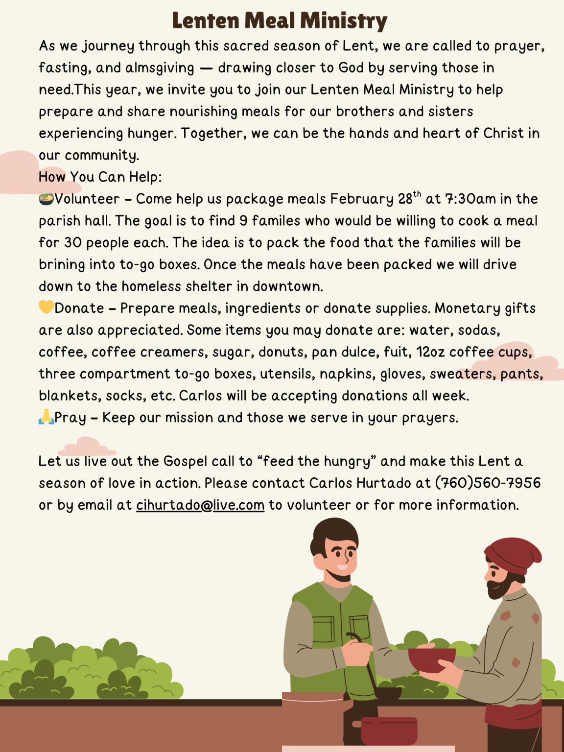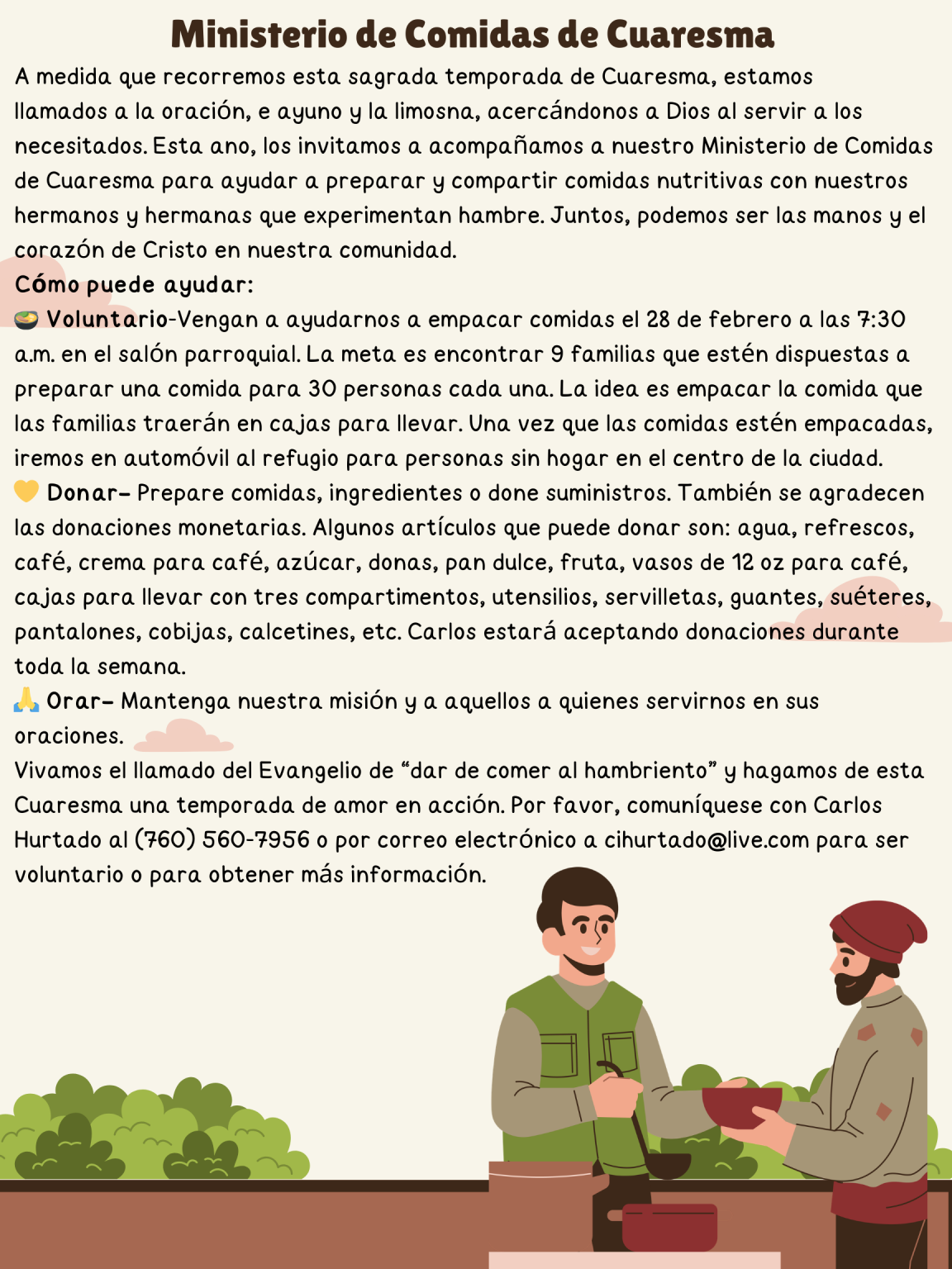 Lenten Meal Ministry/ Ministerio de Comidas de Cuaresma