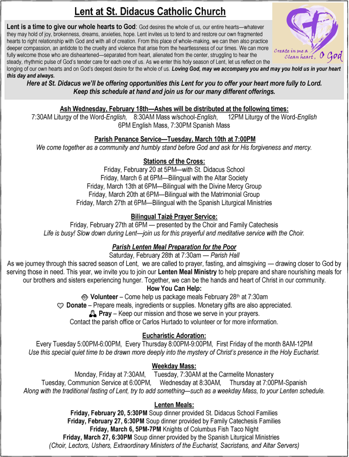 Lenten Schedule